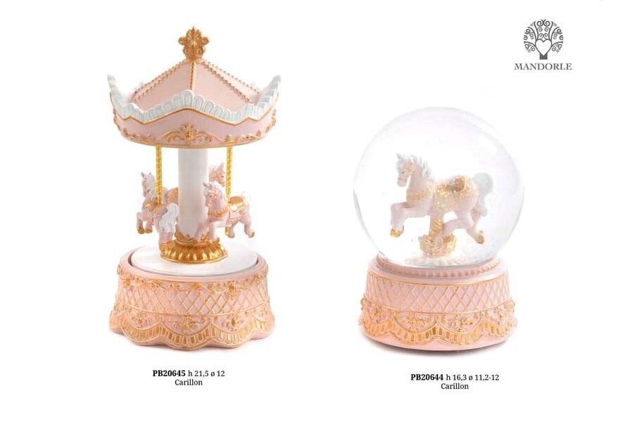 Sfera CAVALLO DA GIOSTRA ROSA/ORO con carillon cm.16,3
